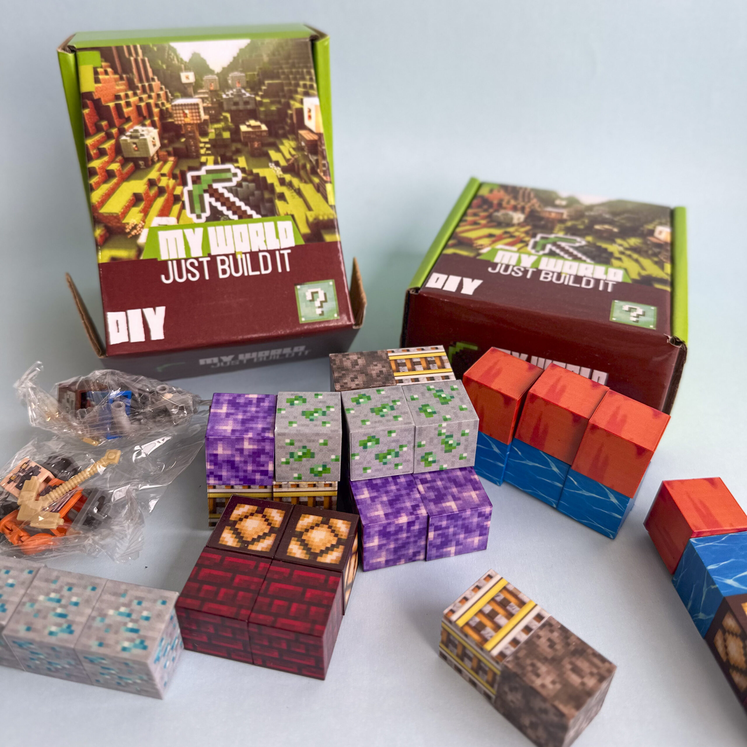 Caja con 36 cubos magnéticos y 2 figuras sorpresas. Los cubos no son los mismos en cada caja.