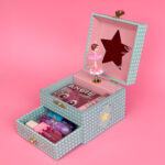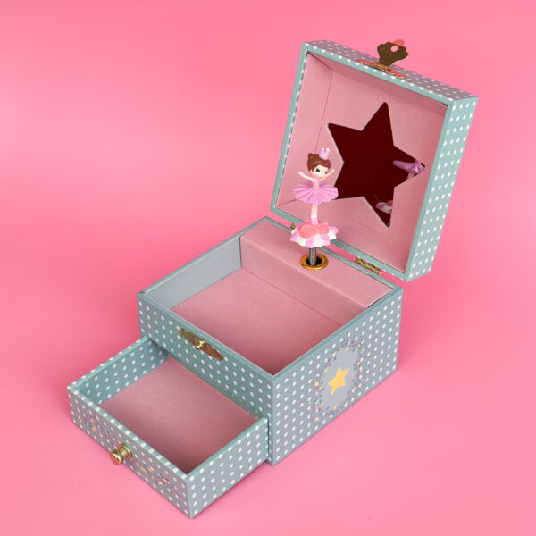 Una pieza mágica y encantadora para atesorar recuerdos. La Caja Musical Bailarina está ilustrada con delicados diseños y cuenta con un cajón ideal para guardar bijouterie, maquillaje u otros pequeños tesoros.