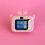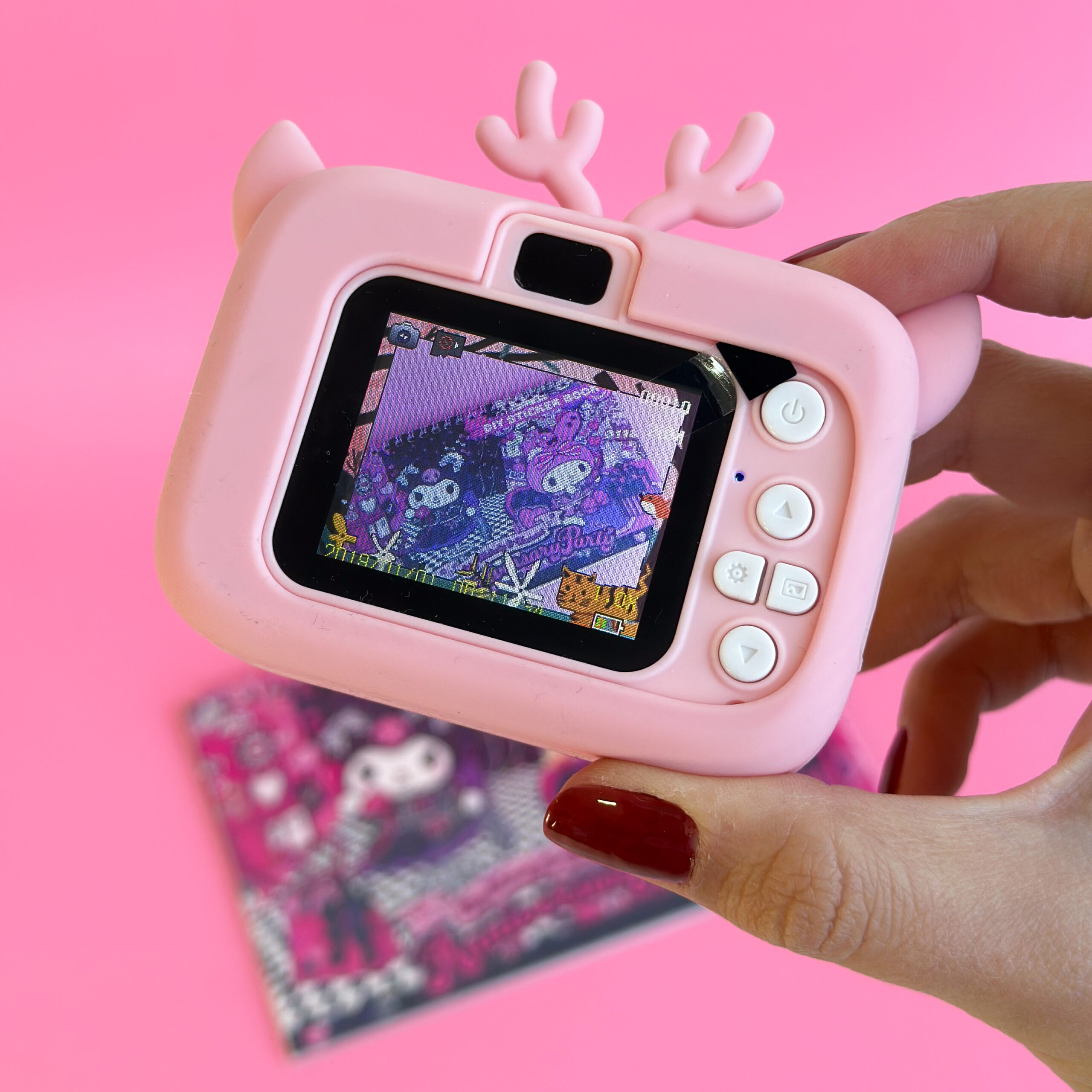 Cámara digital infantil con diseños de animales y pantalla de 2″, ideal para que los más chicos se diviertan sacando fotos. Cuenta con doble lente (frontal y trasera), temporizador automático, filtros, marcos y efectos integrados, además de mini juegos.