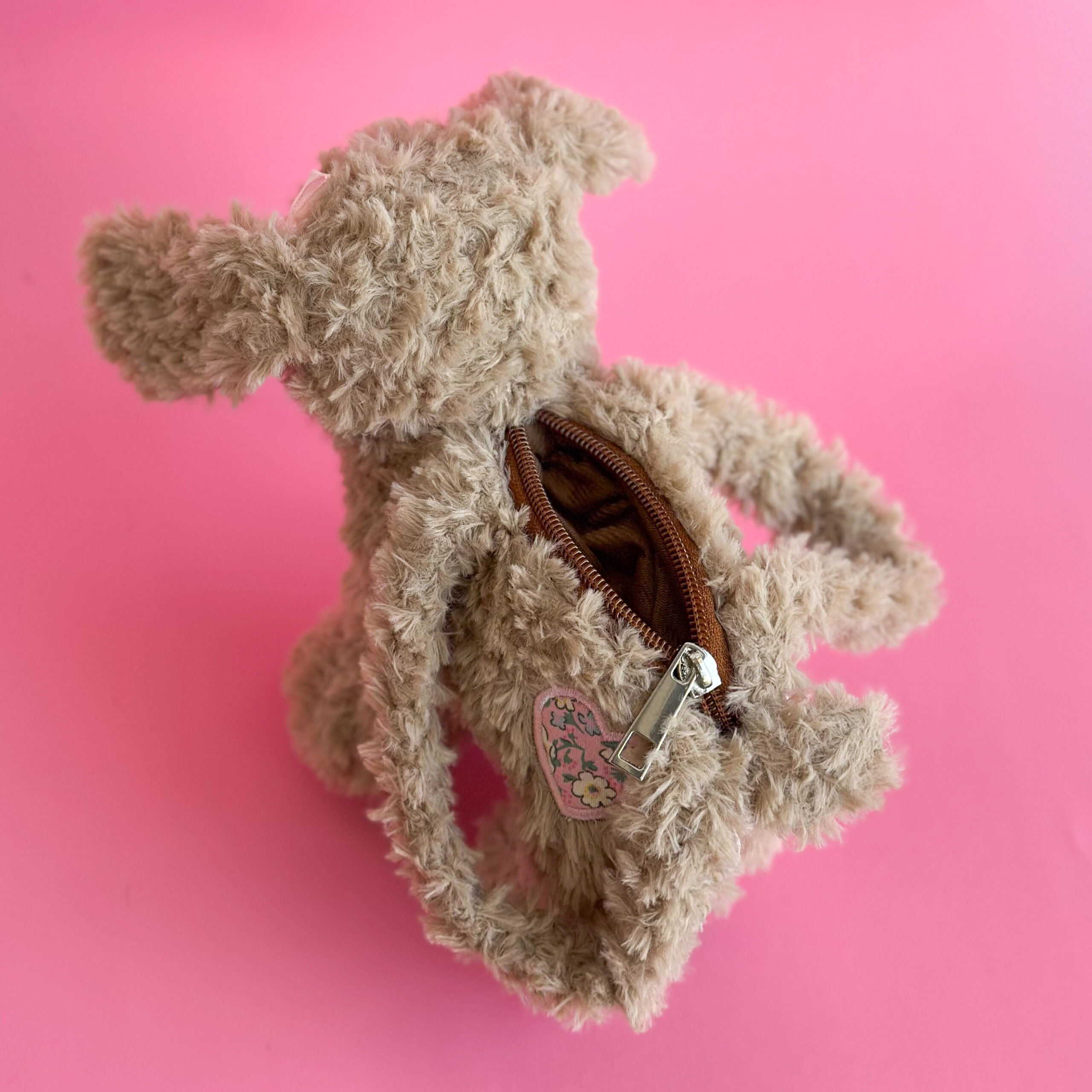Una cartera única con un diseño de peluche adorable, perfecta para llevar lo esencial con un toque de diversión.