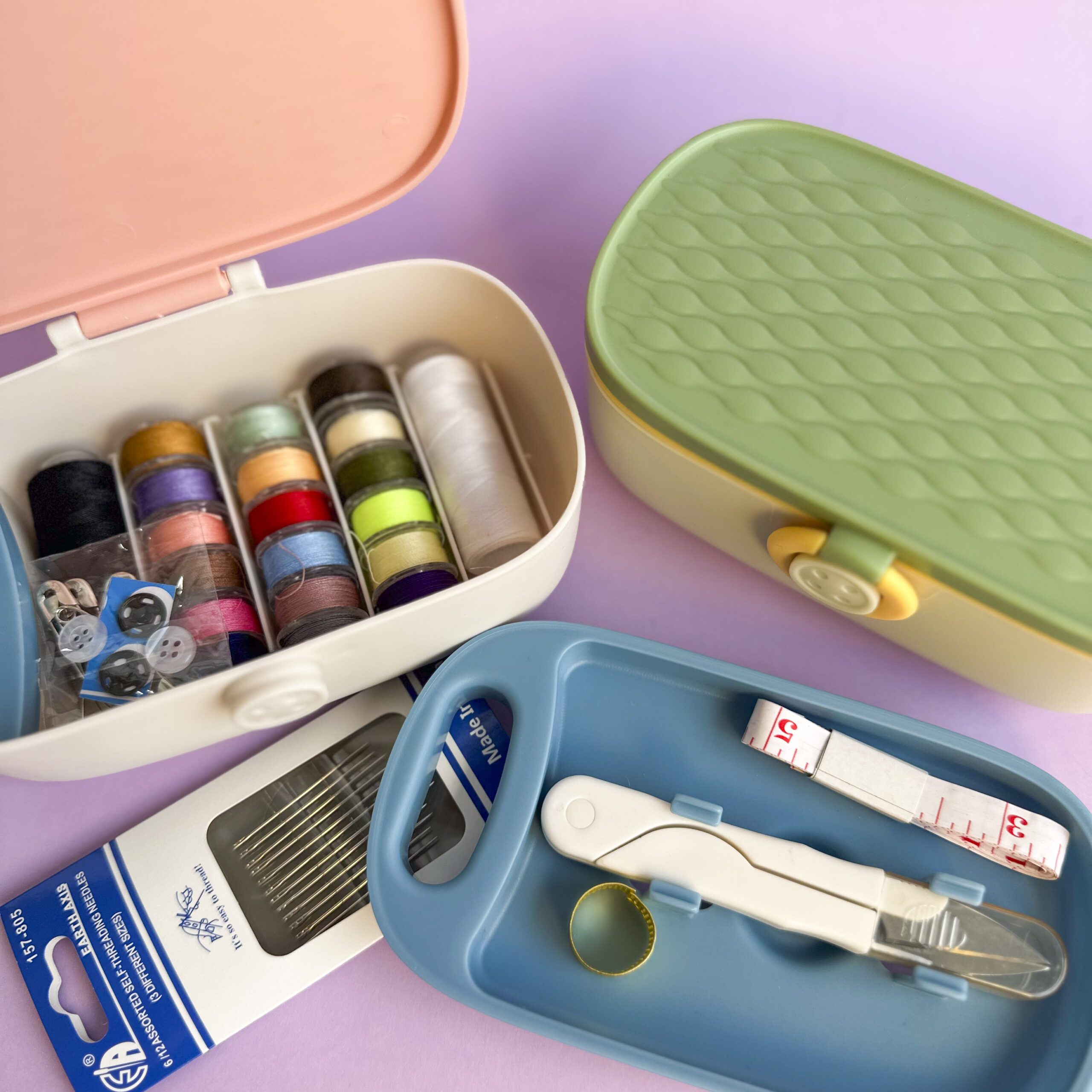Esta cajita costurero tiene todo lo necesario para que encuentre todo en un solo lugar. Cuenta con hilos de diversos colores, hilos, agujas, y más. Por su tamaño compacto son perfectas para llevar de viaje.