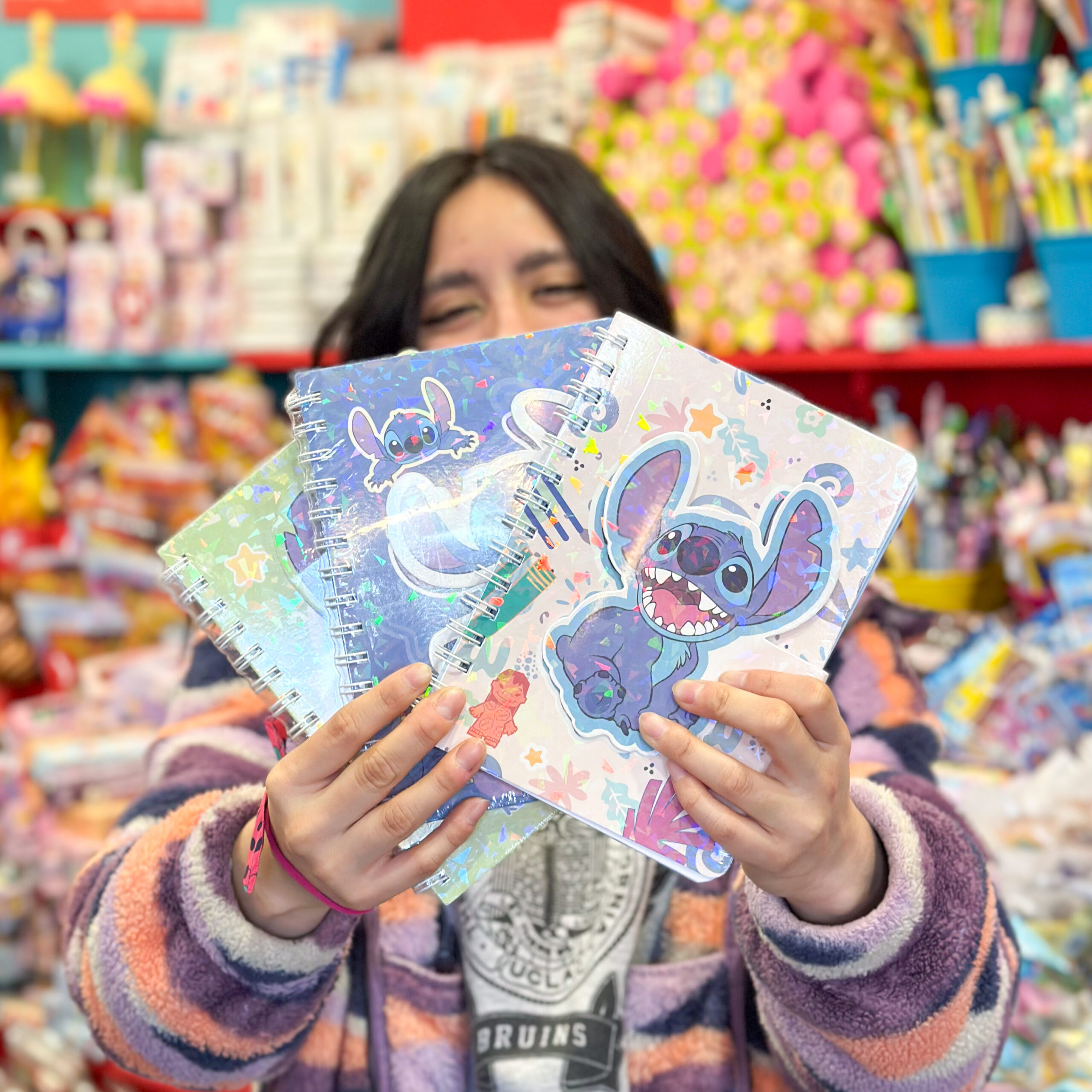 Cuadernos anillados con tapa ilustrada y hojas internas decoradas con diseños de Stitch. Ideales para la escuela, la facu o para usar como diario personal.