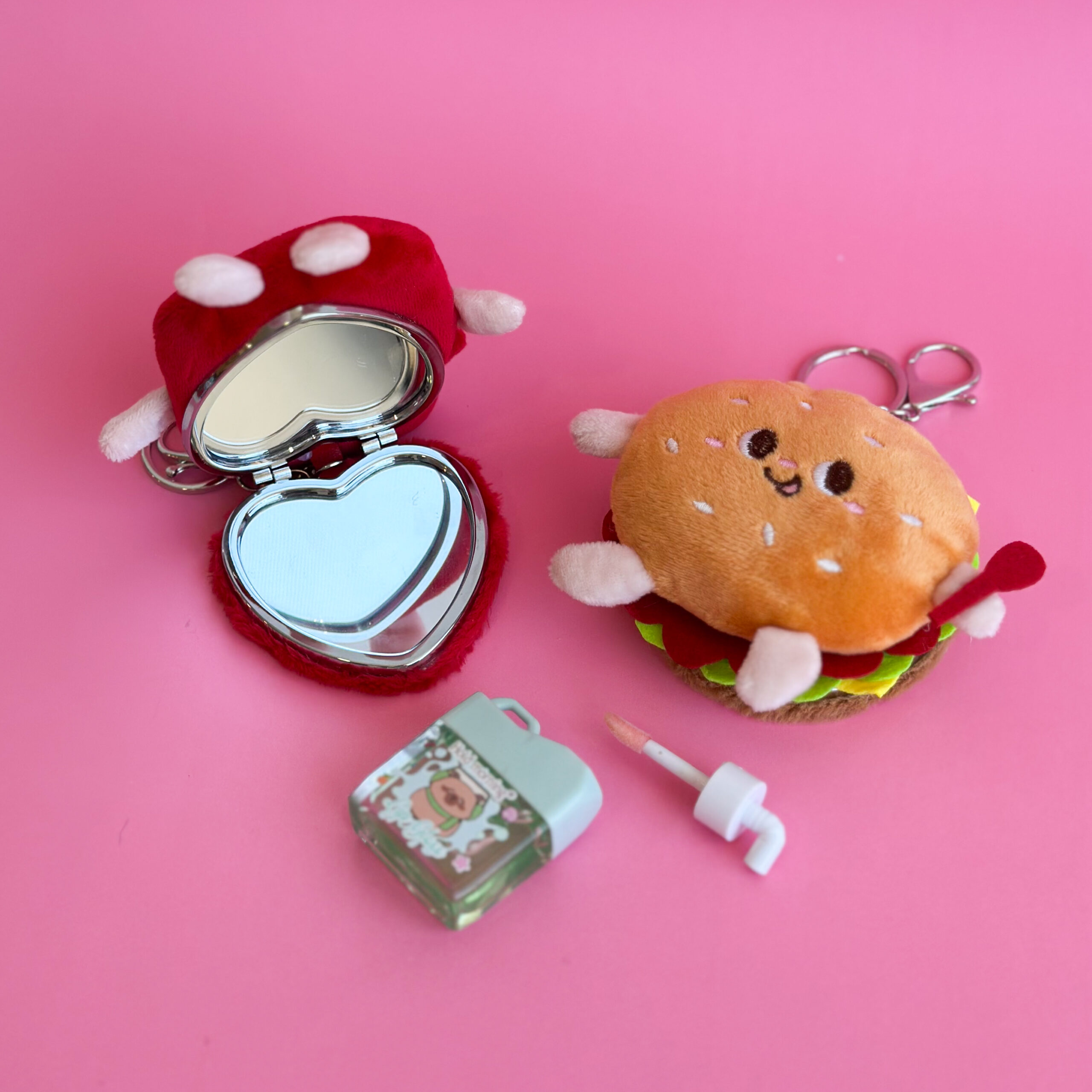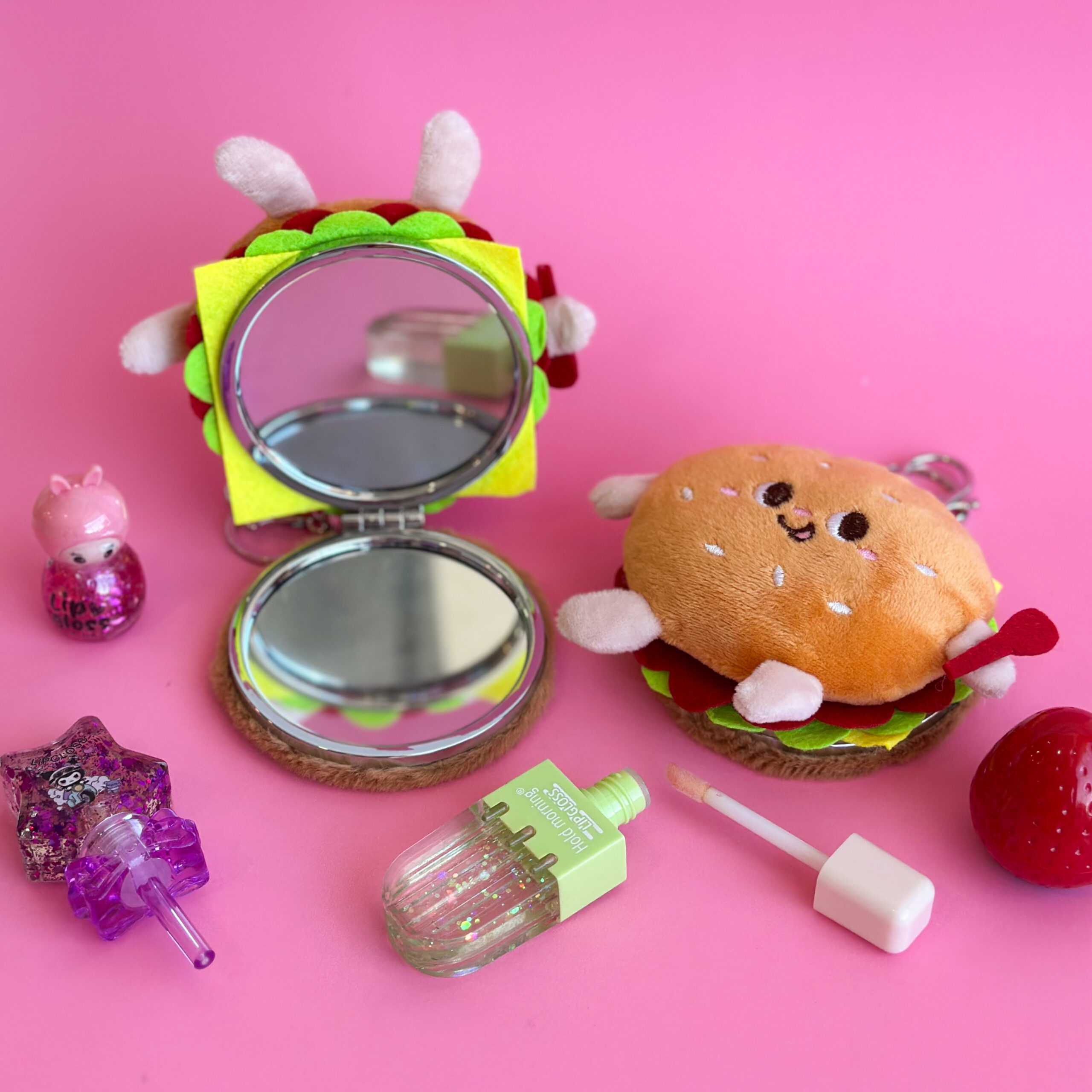 Llaveros de peluche con espejo, irresistiblemente suaves y llenos de personalidad. Con divertidos diseños de comida, son ideales para llevar en la mochila, cartera o llaves, sumando un toque tierno y práctico al día a día.