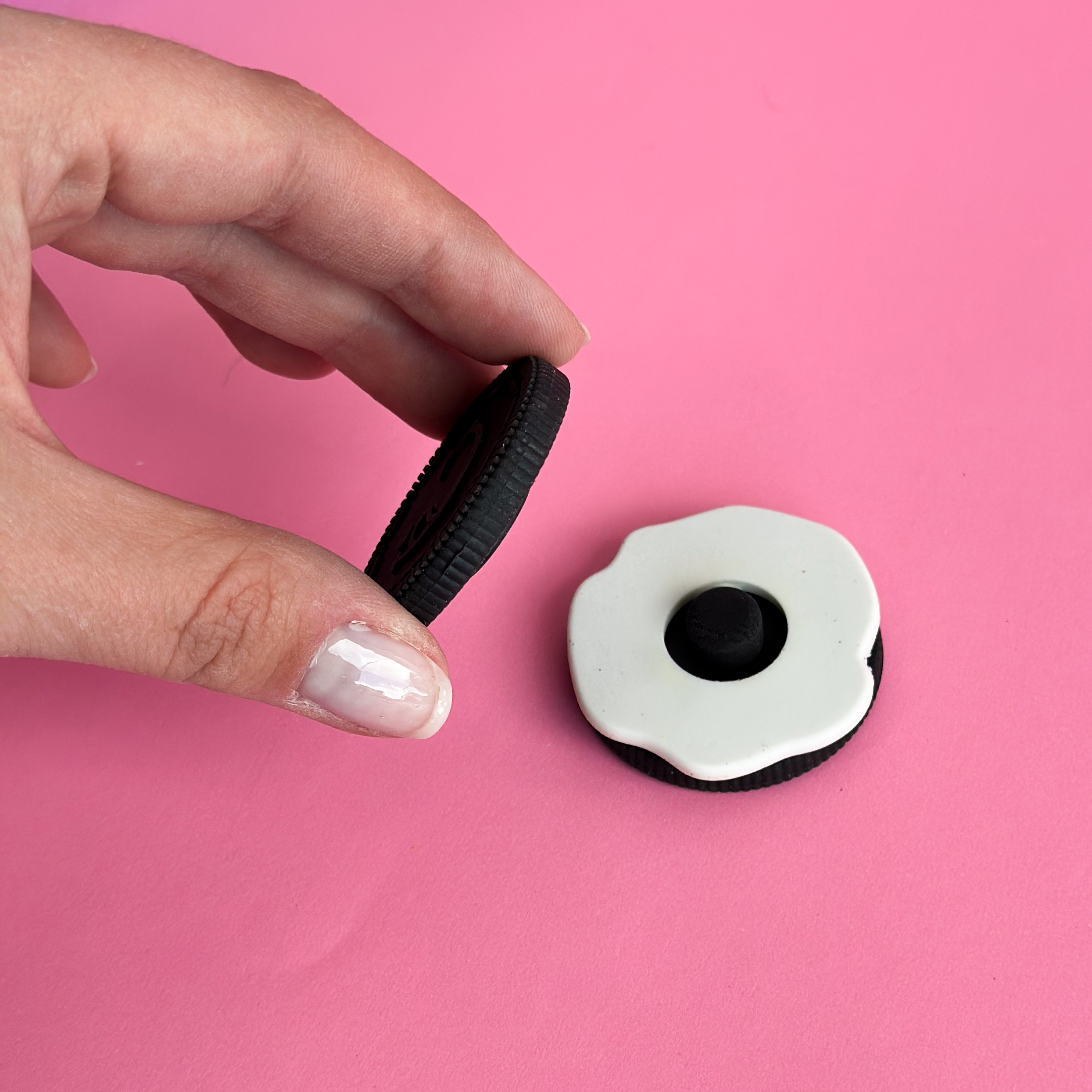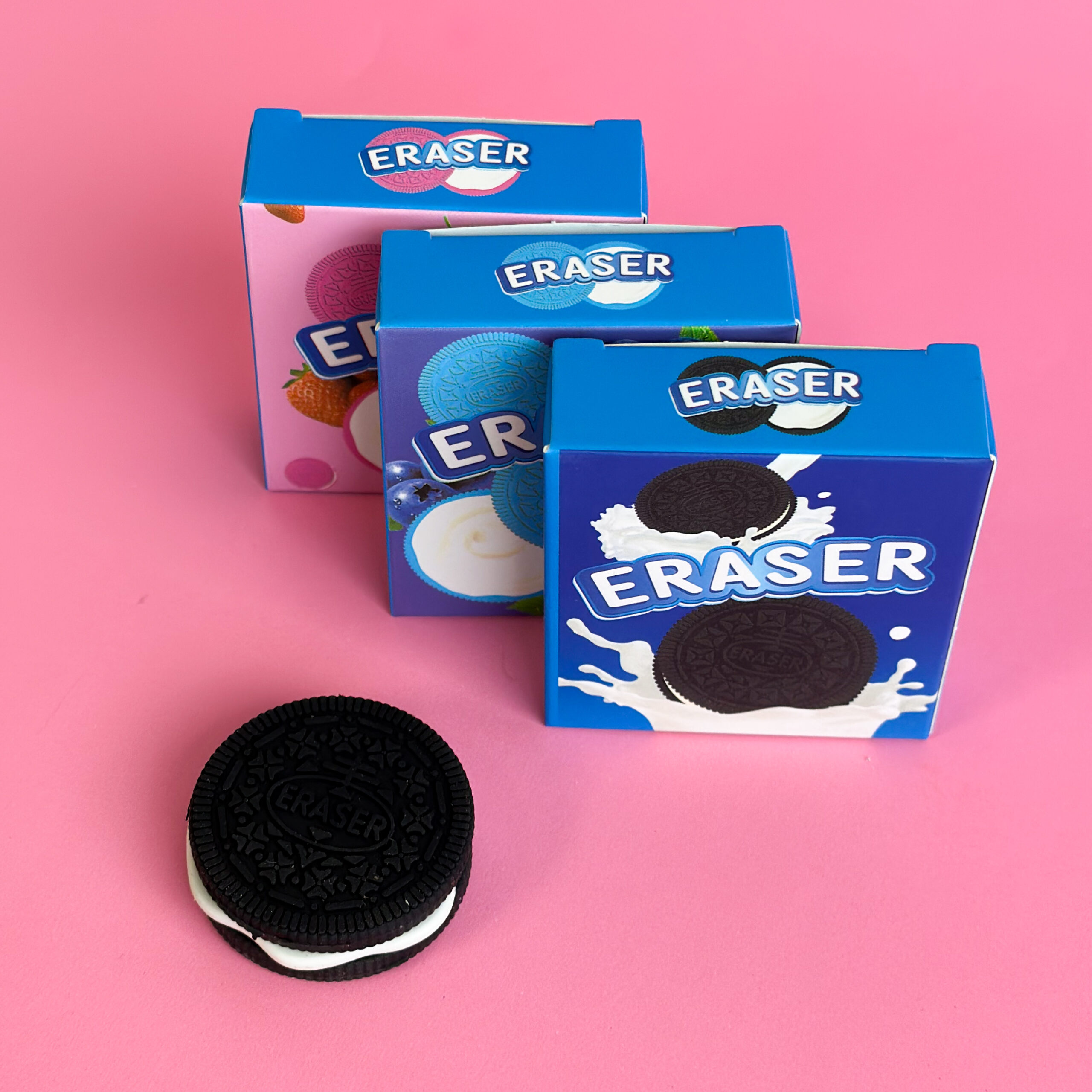 Goma de Borrar desmontable con forma de galletita oreo, un accesorio de escritorio único que combina utilidad con un diseño ingenioso y divertido.