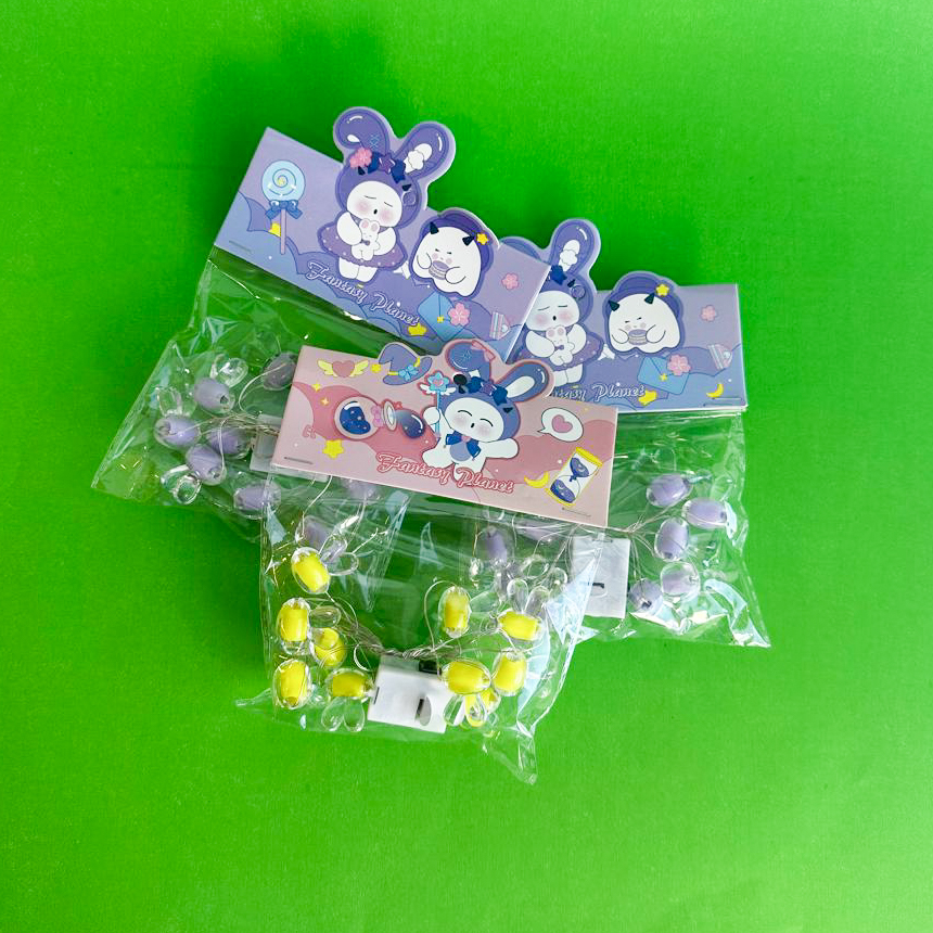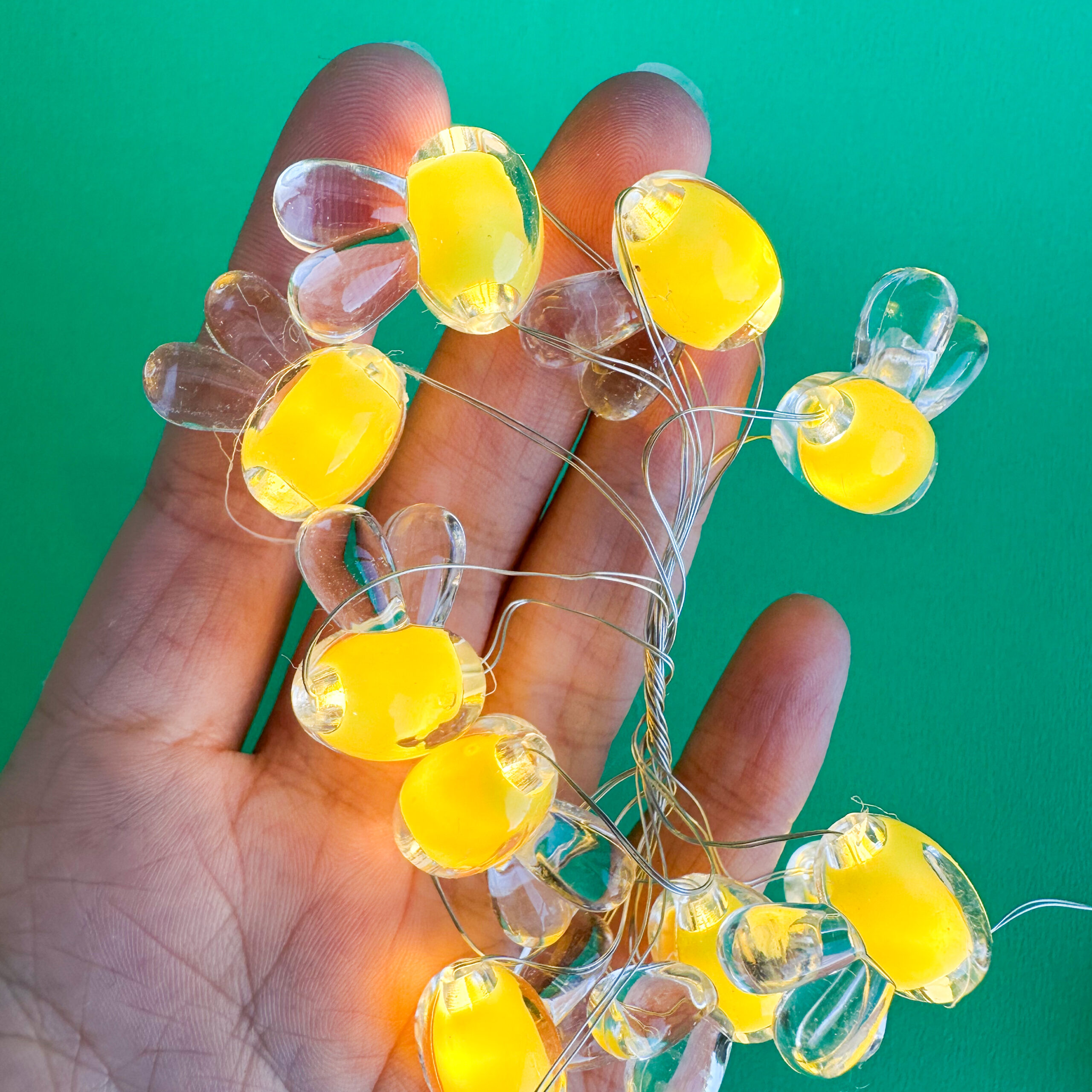 Mini luces con forma de conejitos. Funcionan con pilas.