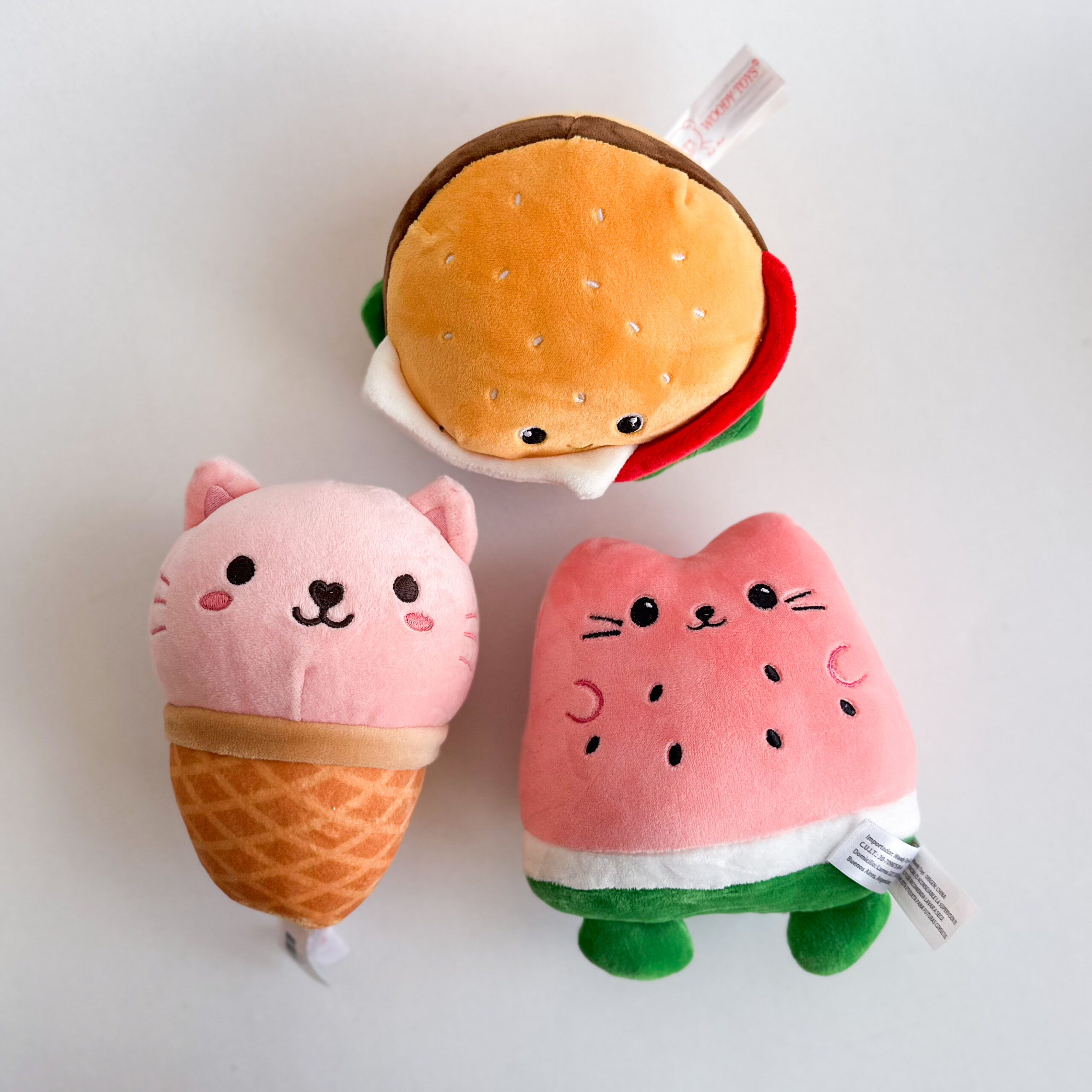 Mini peluches con diseños adorables de alimentos, perfectos para coleccionar o adornar.