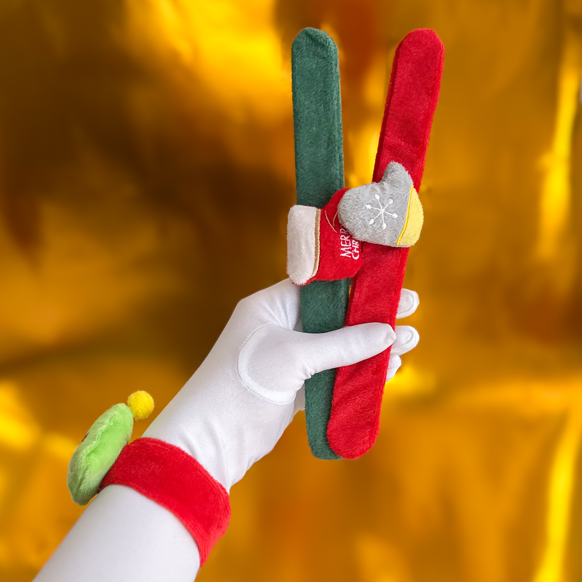 Divertidas y festivas, estas pulseras se estiran y al colocarlas sobre la muñeca se enroscan automáticamente. Con diseños coloridos y temáticos, son ideales para los más chicos o para sumar un toque alegre a tu look navideño.