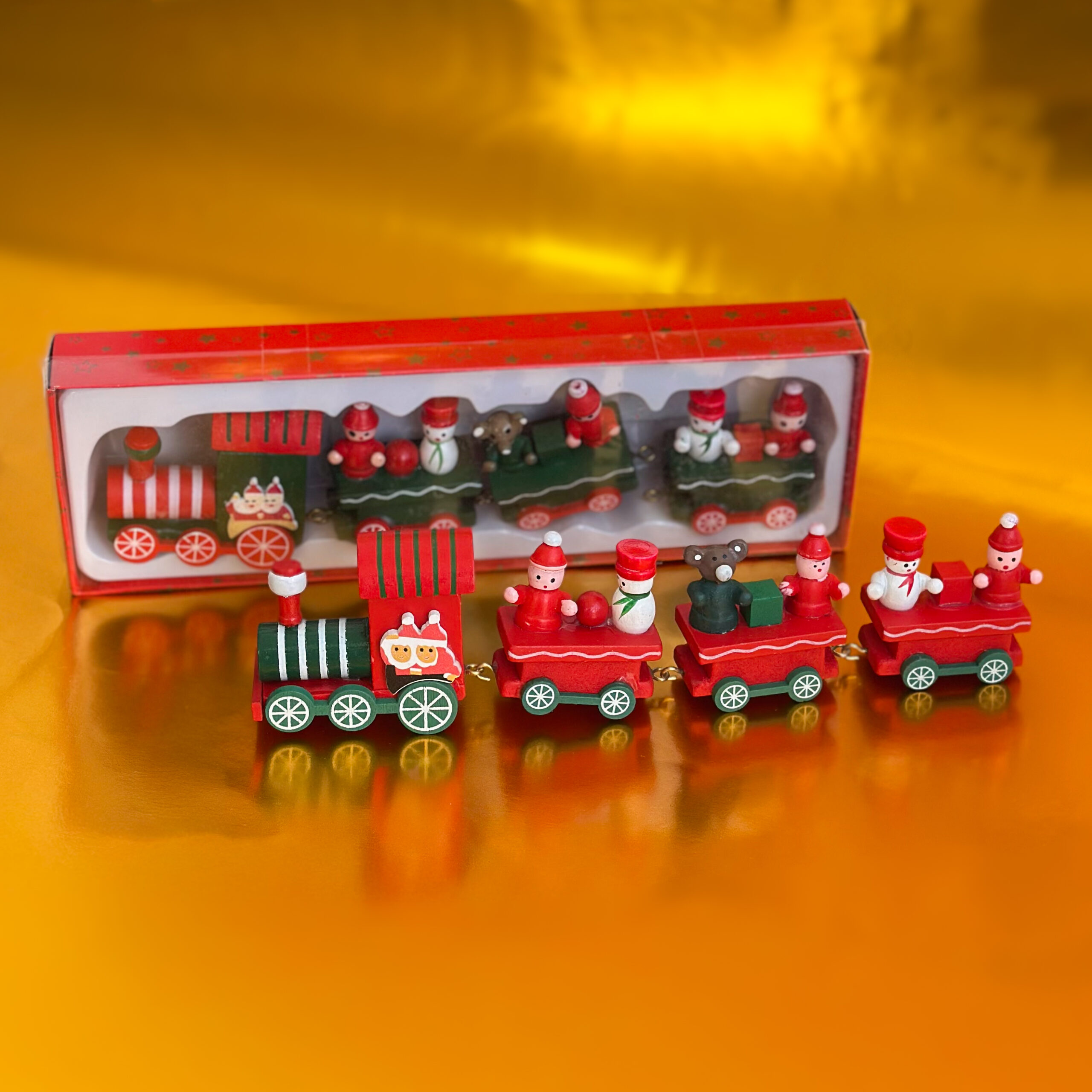 Añade un toque clásico y artesanal a tu decoración de temporada con este encantador tren de madera, con colores y detalles típicos de la Navidad. Incluye una locomotora y tres vagones que se enganchan fácilmente.